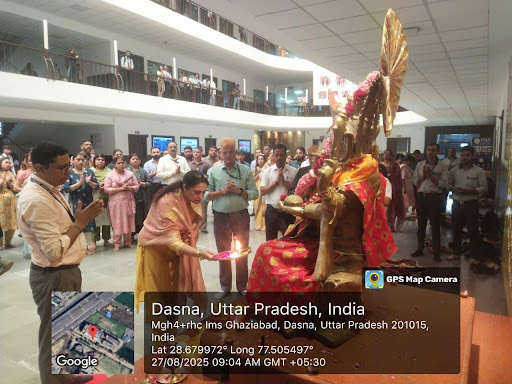 The IMS Ghaziabad (University Courses Campus) successfully organized a 10-day celebration of Ganesh Chaturthi, commencing with the sacred Sthapana of Lord Ganesha and culminating with the Visarjan on 5th September. The festivities were designed to foster devotion, cultural awareness, and a spirit of community bonding among students, faculty, and staff.